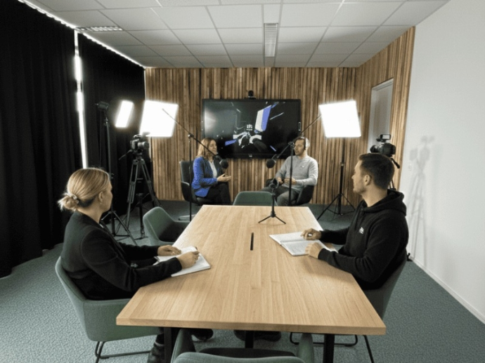Professionelles Setup für Podcast, Interview oder Talk – inkl. Licht, Audio und Support beim Start.